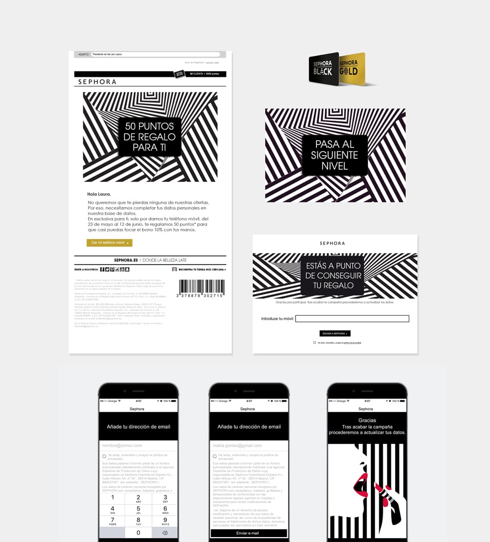 Diseño de los materiales necesarios para Sephora y las marcas que distribuye con el principal objetivo de fidelizar al consumidor manteniendo la consistencia de la identidad de cada una de ellas.