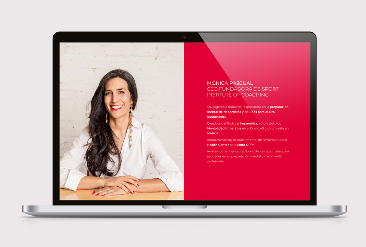 Naming, Identidad de marca y campaña de lanzamiento para la academia online de Mónica Pascual (Ingeniera y coach de alto rendimiento, creadora del podcast Imparables, autora en Diario AS y columnista en MARCA) para formar entrenadores, staff de clubes, federaciones y psicólogos en su metodología propia.
